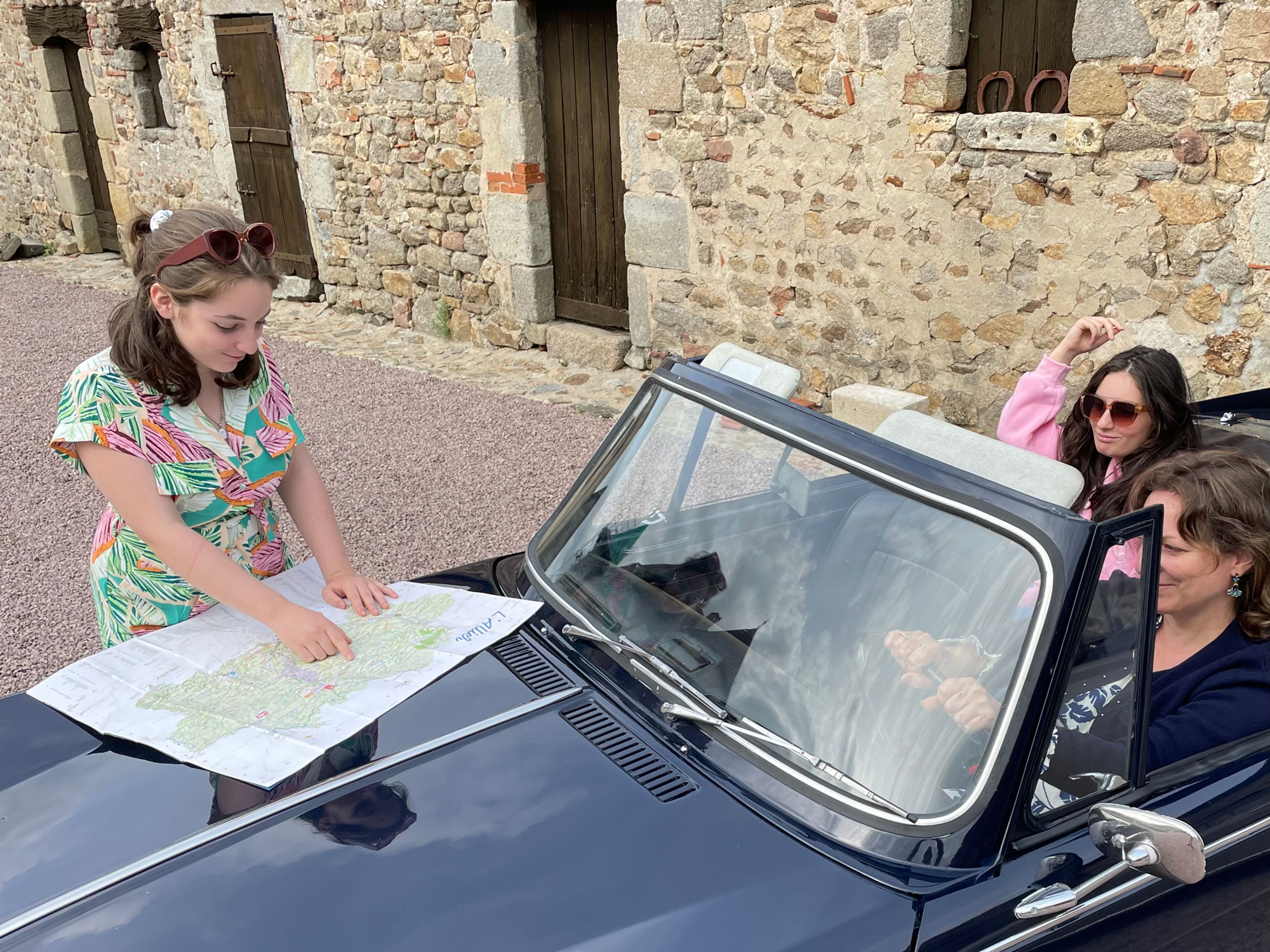 In this new variation, we offer you the chance to experience a road trip in a vintage car through a shorter route. You will set off in one of our convertibles, following a fun roadbook covering about forty kilometers. In nearly two hours, you will discover medieval castles along the small roads of the Bourbonnais region around Fontariol. At the end of this drive, your experience will continue at the Château with dinner and a night of rest at the guesthouse. Vous partirez au volant d’une de nos décapotables en suivant un roadbook ludique d’une quarantaine de kilomètres qui en près de deux heures, vous fera découvrir les châteaux médiévaux le long des petites routes bourbonnaises autour de Fontariol. At the end of this drive, your experience will continue at the Château with dinner and a night of rest at the guesthouse.