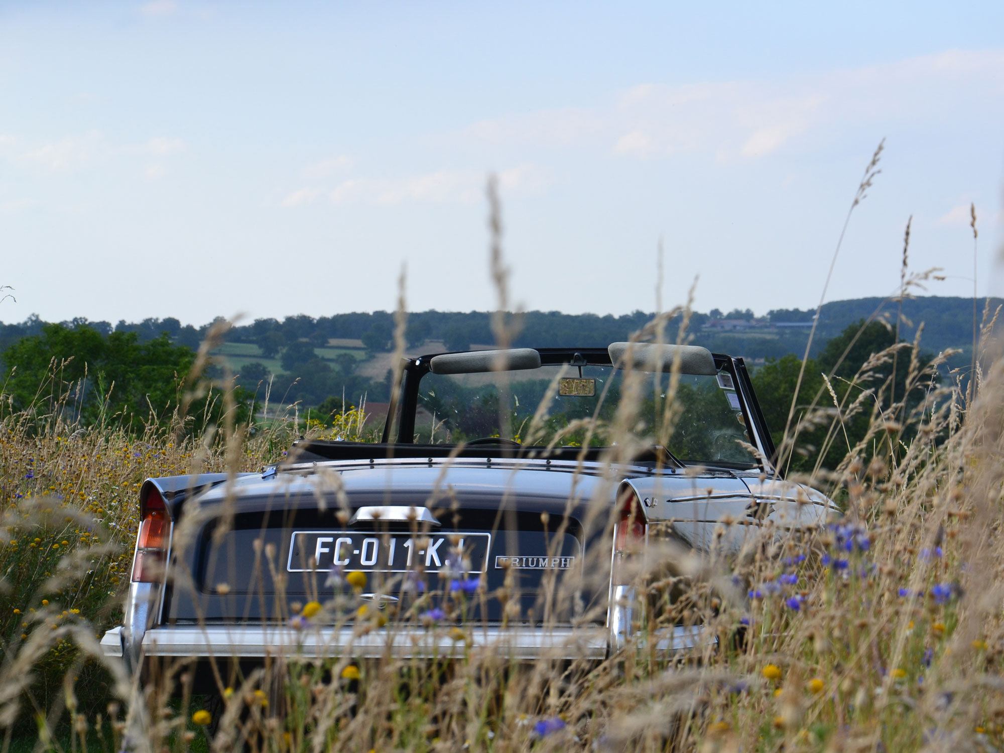 The Triumph Herald, designed by Giovanni Michelotti, was truly the Swiss Army knife of British automotive production in the 1960s. It came in a variety of versions—sedan, coupe, estate, van, and convertible—making it one of the most versatile cars of its time. Its fame was further cemented when Hergé featured it in Tintin and The Black Island, adding to its cultural significance. The early models had small-displacement engines, but over time, the Herald evolved to include the 1360cc engine, shared with the legendary Triumph Spitfire, giving it respectable road performance for the era. The 1968 Triumph Herald 13/60 convertible you’re describing sounds like a beautifully preserved classic. With its Navy Blue body, aged restoration, and recent mechanical refurbishments (engine, transmission, brakes), it offers a genuine vintage driving experience. Despite its compact size, it remains a true four-seater, making it ideal for exploring the Bourbonnais countryside. Of course, as with any classic car, careful attention to controls and braking is essential when taking it out for a spin.